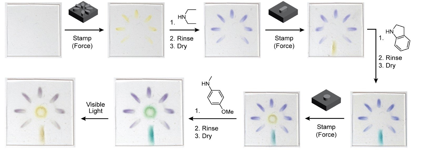The paper describing the work is titled "Mechanically gated formation of donor– acceptor Stenhouse adducts enabling mechanochemical multicolour soft lithography." Co-authors are chemistry graduate student Anna C. Overholts and undergraduate student Wendy Granados Razo.
