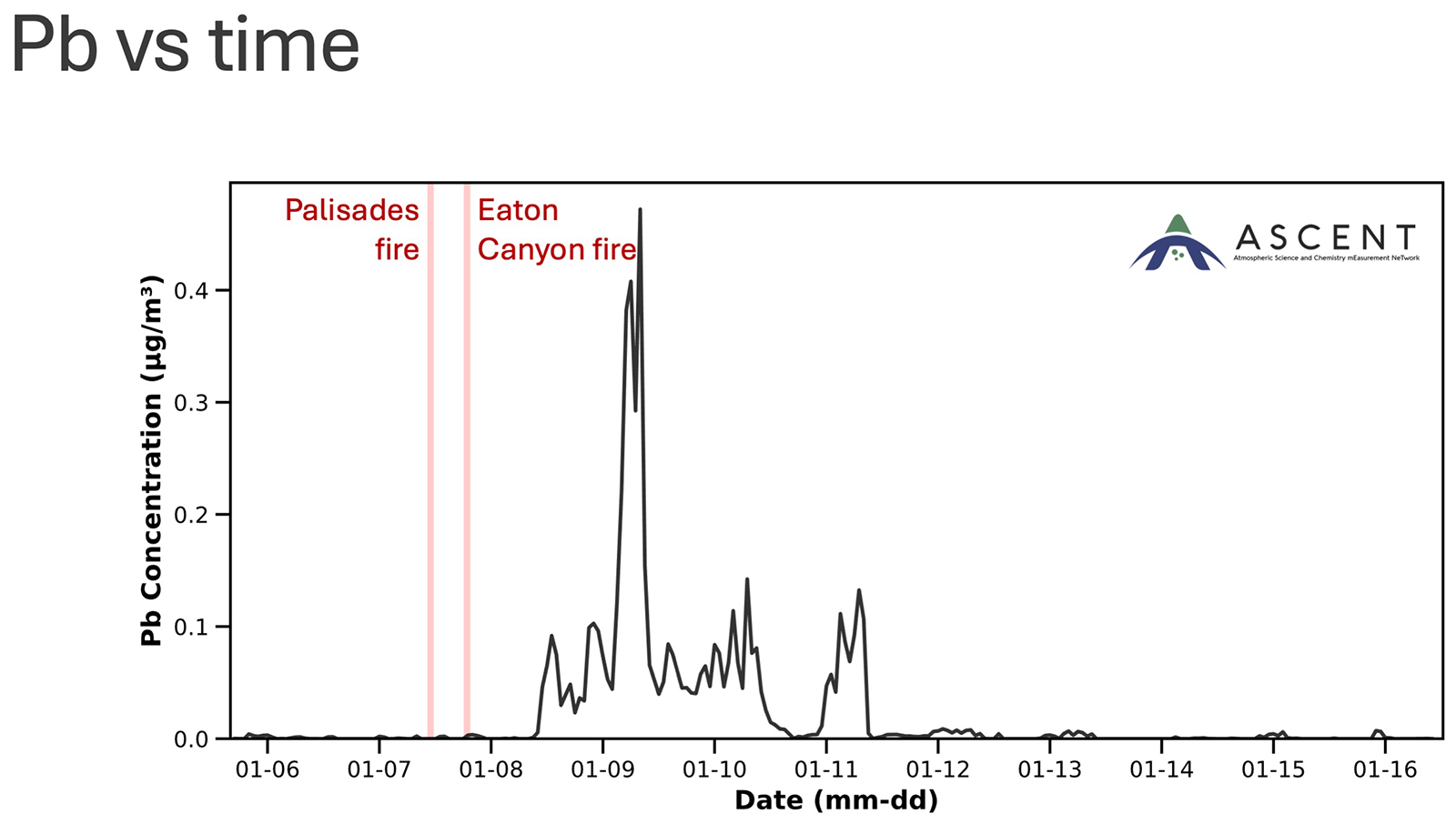 During and immediately following the Los Angeles fires, the wind was largely blowing southward, pushing the plumes from the Eaton fire directly in the direction of the Pico Rivera ASCENT station. Therefore, the scientists believe that the data collected there mostly pertain to the Eaton fire.