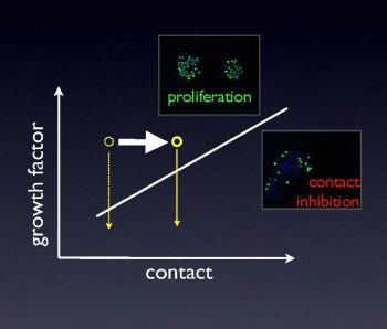 In normal epithelial tissues, mature cells that are in contact with one another tend not to divide, explains Anand Asthagiri, assistant professor of chemical engineering at Caltech, and the paper's principal investigator. This process, known as contact inhibition, is one of the ways the body keeps cell growth in check. When contact inhibition is disrupted, you get uncontrolled growth and the formation of tumors.