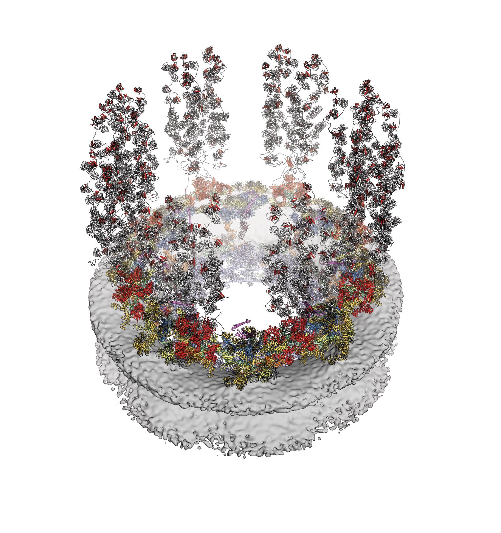 "We built a framework on which a lot of experiments can now be done," says Christopher Bley, a senior postdoctoral scholar research associate in chemistry and also co-first author. "We have this composite structure now, and it enables and informs future experiments on NPC function, or even diseases. There are a lot of mutations in the NPC that are associated with terrible diseases, and knowing where they are in the structure and how they come together can help design the next set of experiments to try and answer the questions of what these mutations are doing."
