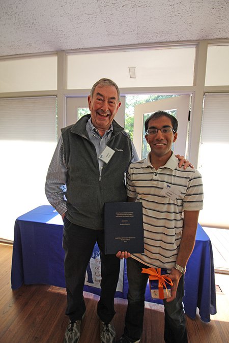 Senior Ayush Gupta has been named as the winner of this year's Library Friends' Senior Thesis Prize. The Thesis Prize, established in 2010, is intended to encourage undergraduates to complete a formal work of scholarship as a capstone project for their undergraduate career and to recognize sophisticated in-depth use of library and archival research. For their achievement, recipients of the $1,200 prize are listed in the commencement program. This year's prizes were announced and awarded at a reception at Alumni House on Tuesday, June 1, with students, alumni, Friends of the Caltech Libraries, library staff, and faculty present.